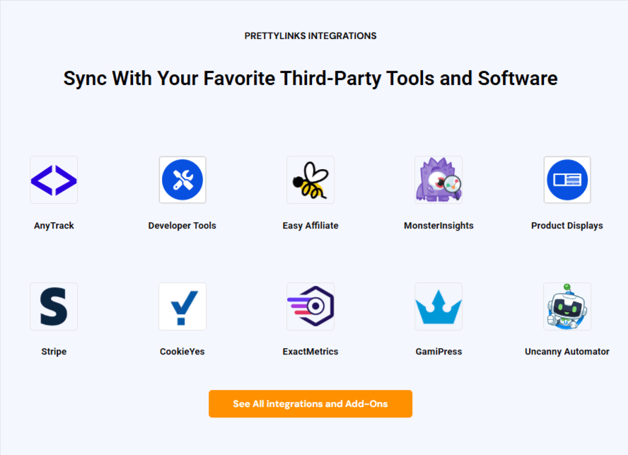 PrettyLinks does a lot—but even we’ll admit it can’t do everything. That’s why we integrate with the tools affiliates rely on for email, analytics, payments, gamification, and more.