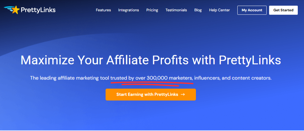 Our homepage makes it clear from the start—affiliates who use PrettyLinks earn more commissions. That promise is backed by 300K downloads and counting… and that’s worth a headline!