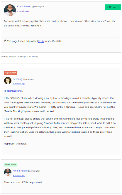 We encourage Lite users to head to our WordPress.org forum, where many common PrettyLinks questions are already answered by our plugin support experts: