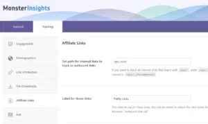 Während Sie sich noch im Tracking-Tab des MonsterInsights-Plugins befinden, gehen Sie im Seitenmenü auf den Reiter Affiliate Links.