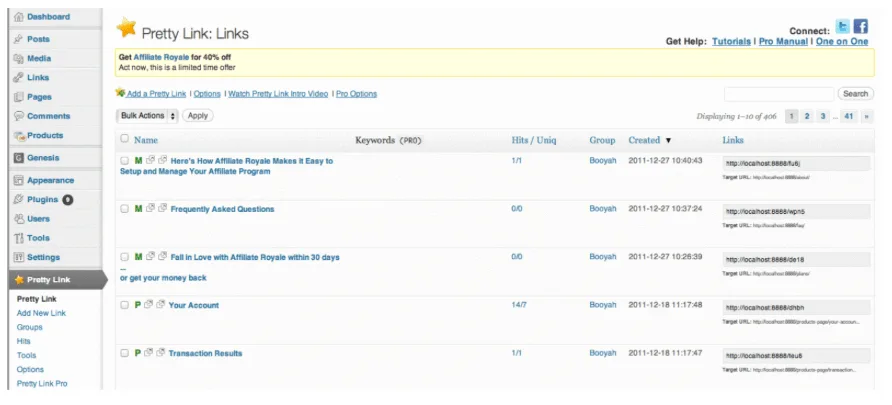 Por último, está PrettyLinks. Se trata de un plugin para WordPress que, a diferencia de otros acortadores de enlaces, deja intacta la marca de su URL personalizada. También ofrece un montón de otras características, incluyendo: