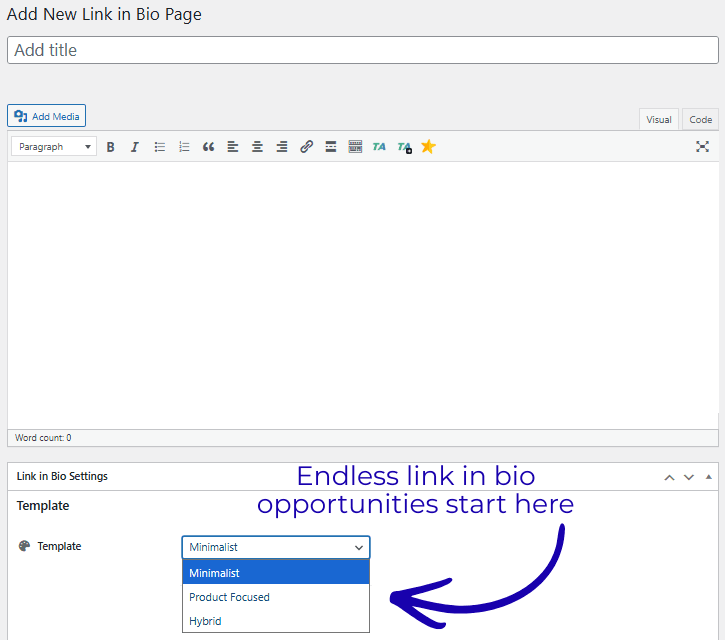 As I mentioned earlier, PrettyLinks Link In Bio pages are simple WordPress pages that you conveniently create through the PrettyLinks Link In Bio add-on—instead of having to build something from scratch.