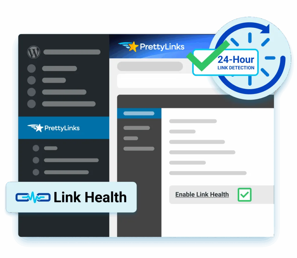 O Link Health é incorporado diretamente no PrettyLinks, permitindo que você monitore o status de cada URL enquanto gerencia sua coleção e estratégias dentro do WordPress.