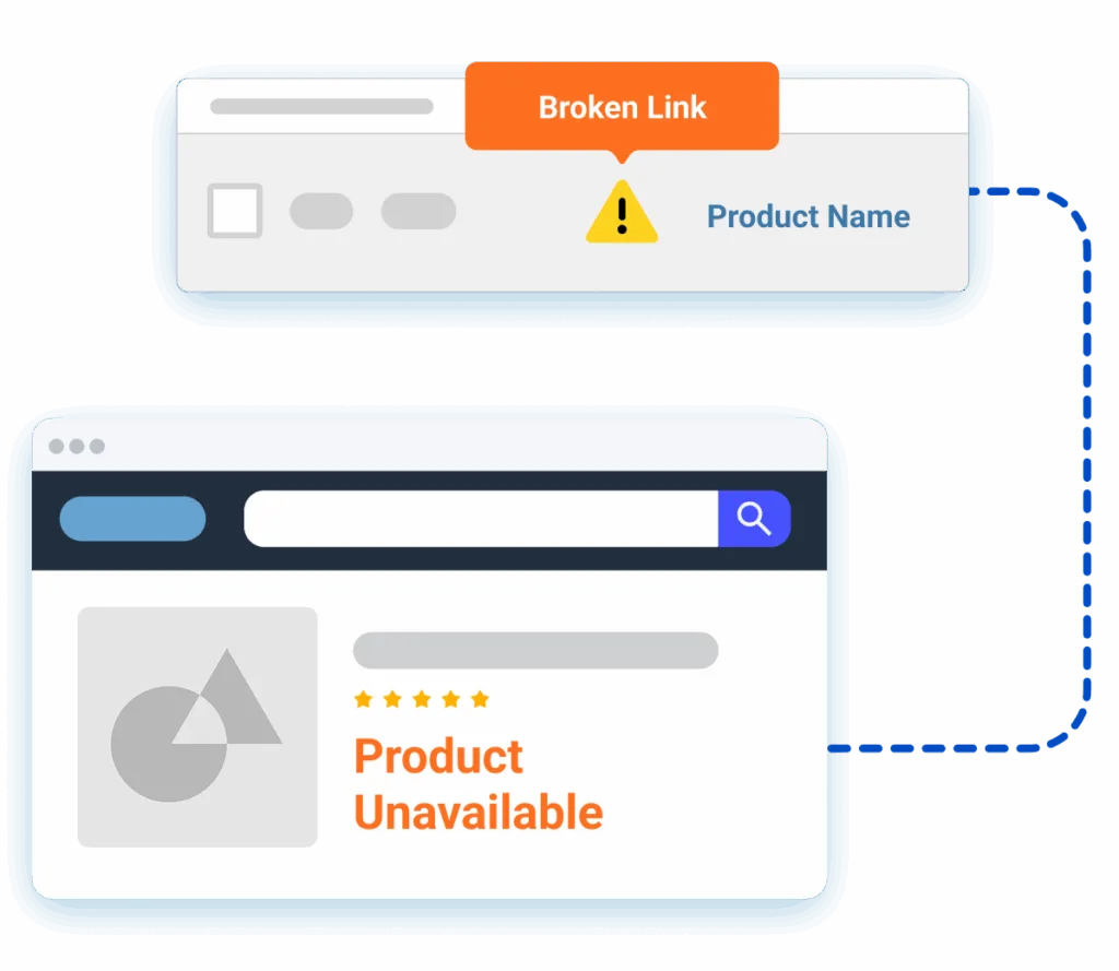 Detecte quebras de links ocultos causadas por páginas de produtos excluídas ou reestruturações de sites que eliminam seu link original sem aviso.